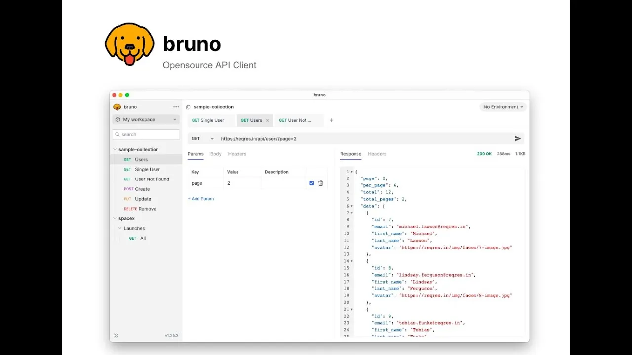Bruno 是一款旨在革新 API 测试工具现状的开源 API 客户端,它主打快速、对 Git 友好以及离线使用等特性。 与 Postman 和 Insomnia 等工具不同,Bruno 采用创新的本地优先策略,将 API 集合直接存储在本地文件系统中,并使用专门设计的 Bru 纯文本标记语言来保存 API 请求信息。这种设计不仅确保了数据安全,还极大地提升了工作效率。